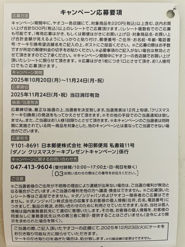 【ダノン】クリスマスケーキプレゼントキャンペーン 11/24締切