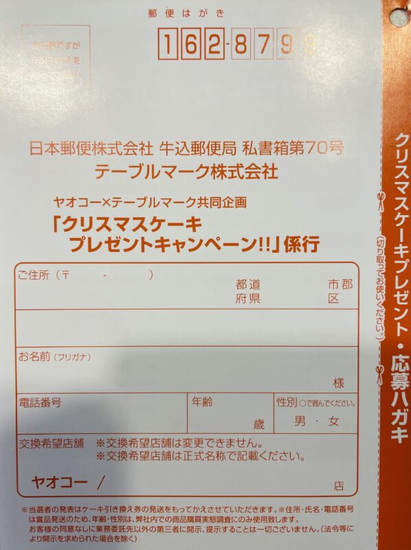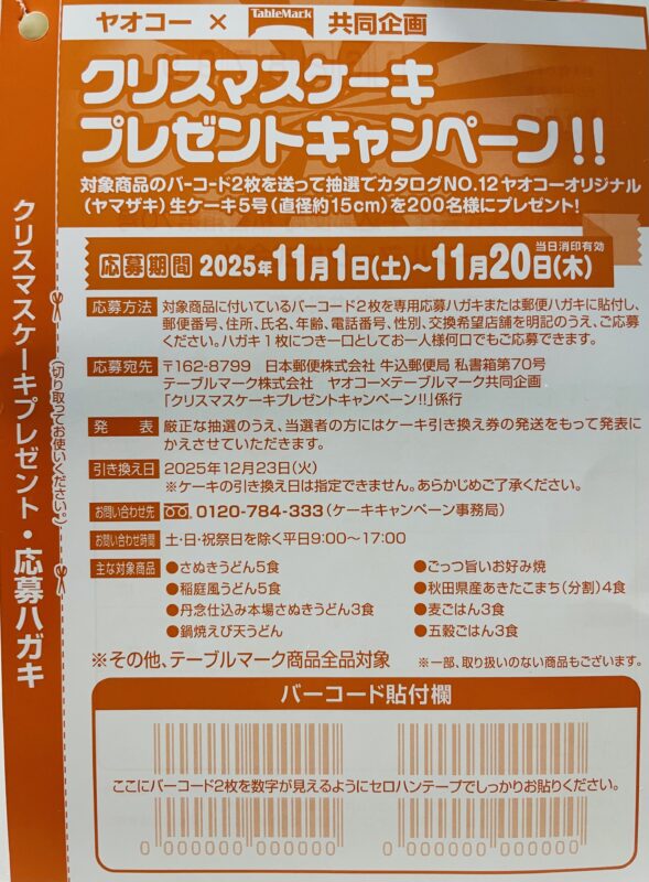 【テーブルマーク】クリスマスケーキプレゼントキャンペーン 11/20締切