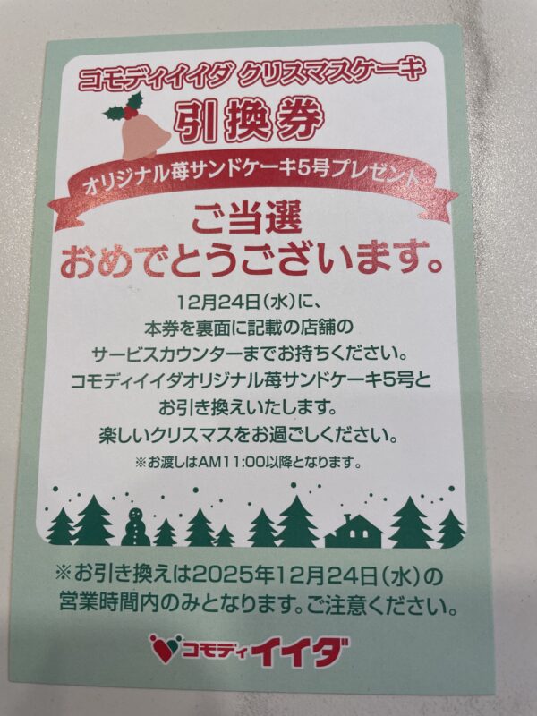 【当選報告】コモディイイダ クリスマスケーキプレゼントキャンペーン