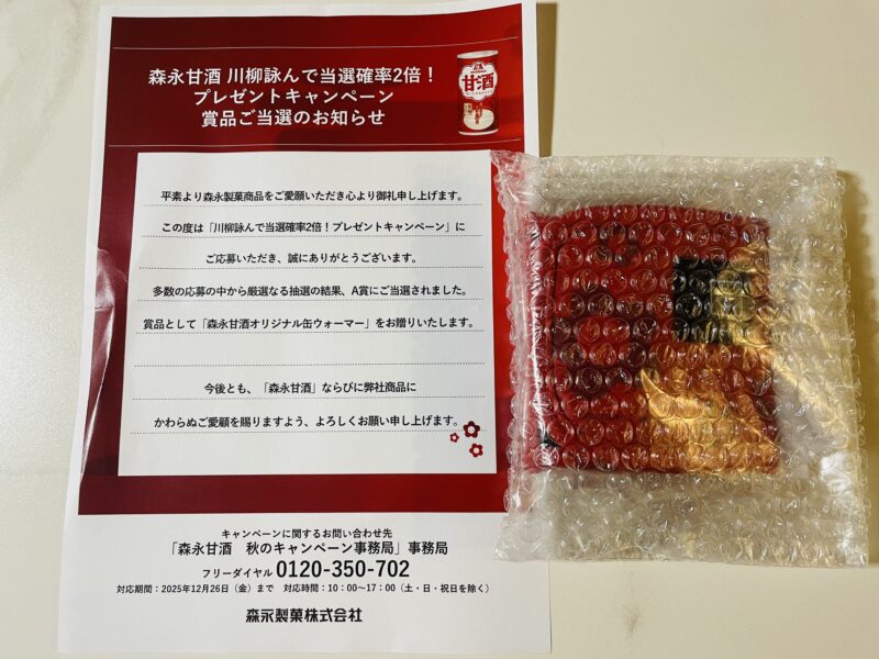 【当選報告】森永製菓 森永甘酒川柳詠んで当選確率2倍!プレゼントキャンペーン