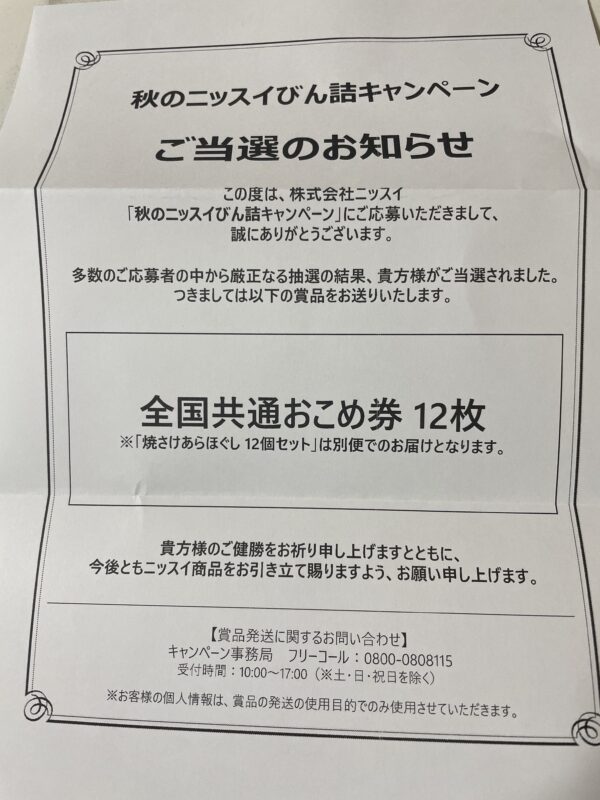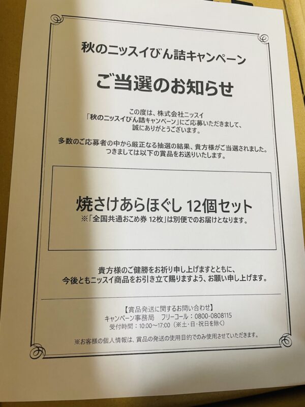 【当選報告】 ニッスイ 秋のニッスイびん詰キャンペーン