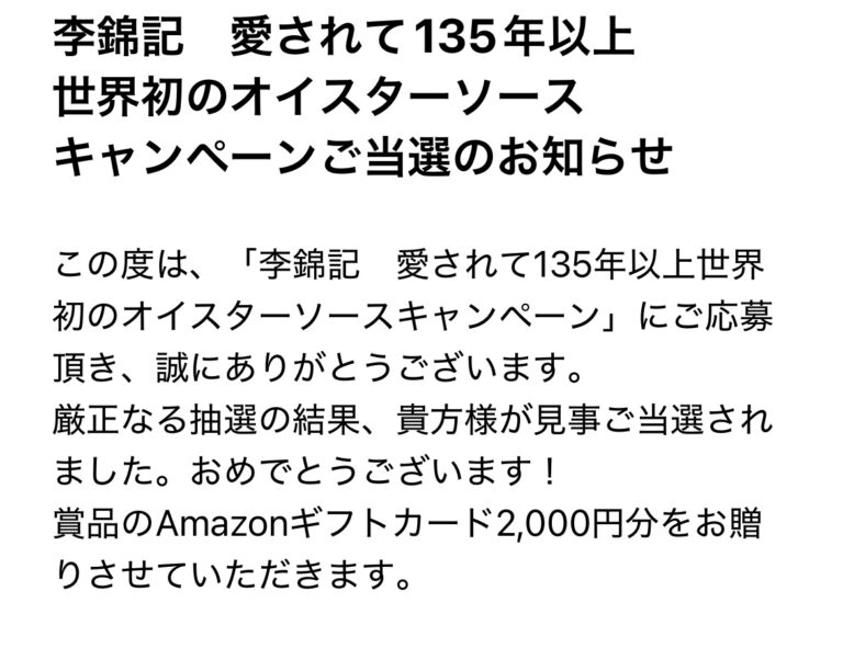 【当選報告】李錦記 愛されて135年以上世界初のオイスターソースキャンペーン