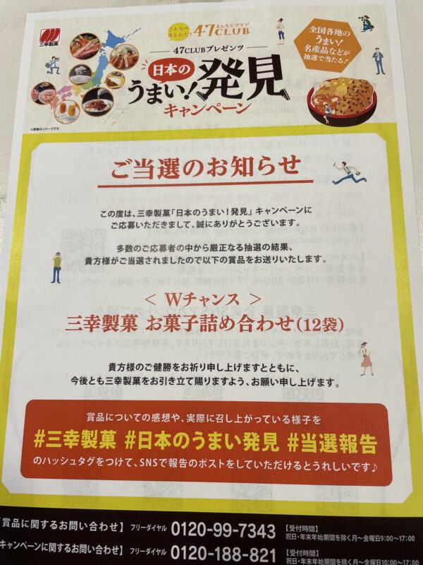 【当選報告】三幸製菓 47CLUBプレゼンツ日本のうまい!発見キャンペーン