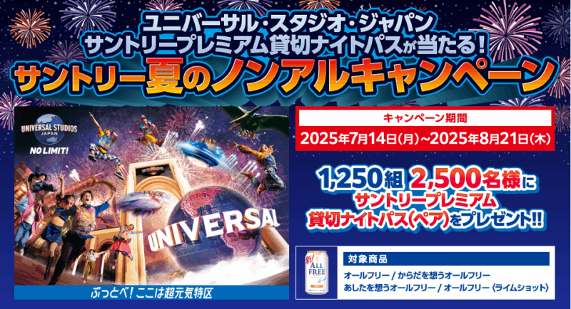 ユニバーサルスタジオジャパン「サントリープレミアム貸切ナイト」パス ペアチケット/1250組2500名